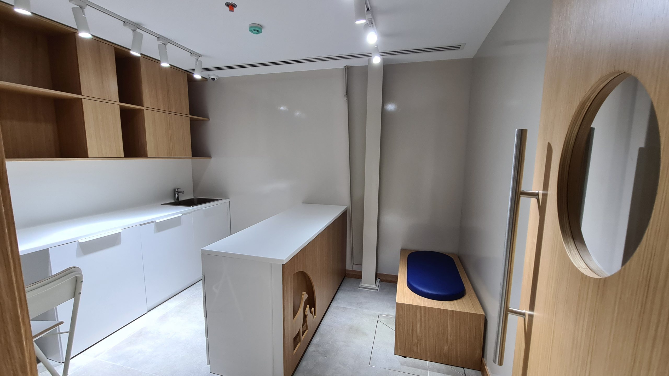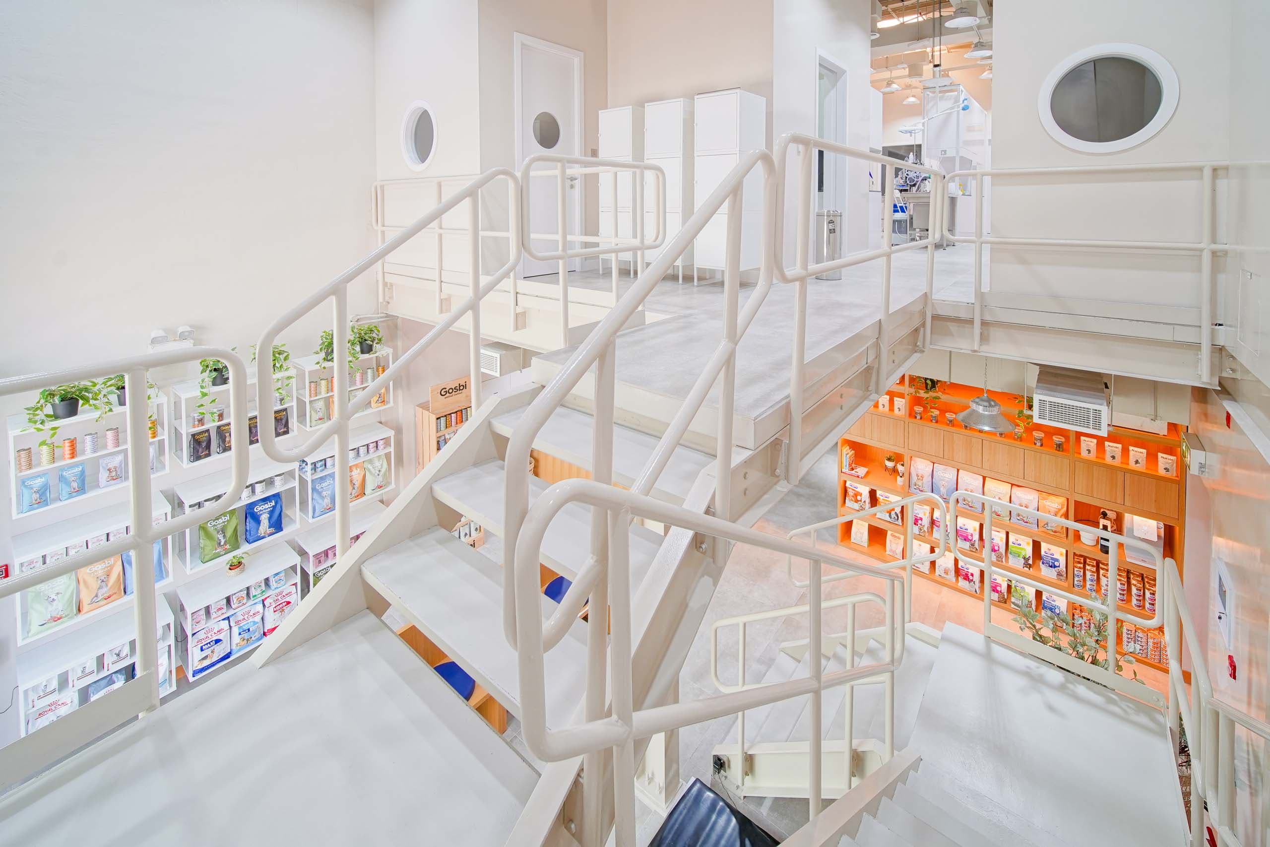 لقد خططت Modern Vet لجميع عياداتها مع وضع البشر والحيوانات الأليفة في الاعتبار – وهذا المنفذ ليس استثناءً. تتيح عيادة الخوانيج في Modern Vet زيارات بيطرية خالية من الإجهاد لكل من البشر وحيواناتهم الأليفة … تم تصميم كل شيء مع وضع الحيوانات في الاعتبار. يسمح ترتيب المقاعد للقطط والكلاب بالجلوس بشكل منفصل أثناء انتظار موعدهم مما يقلل بالفعل من مستويات التوتر في كل من القطط والكلاب لأن الحيوانات الأليفة تكون بالفعل على حافة الهاوية عند الذهاب إلى الأطباء البيطريين.